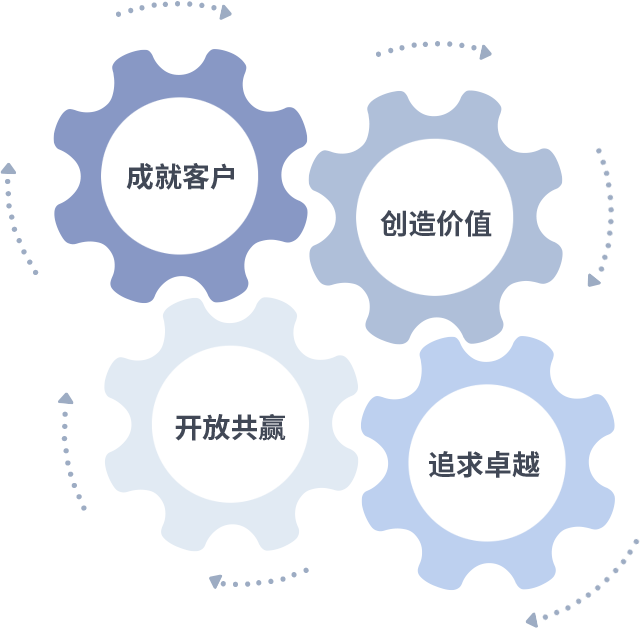 成就客户是一切决策的出发点,创造价值是衡量所有工作的标准,追求卓越是来利国际w66做事做人的态度,开放共赢是来利国际w66的格局也是最终的结果。价值观的齿轮环环相扣,推动着组织里的每个人不断向前。